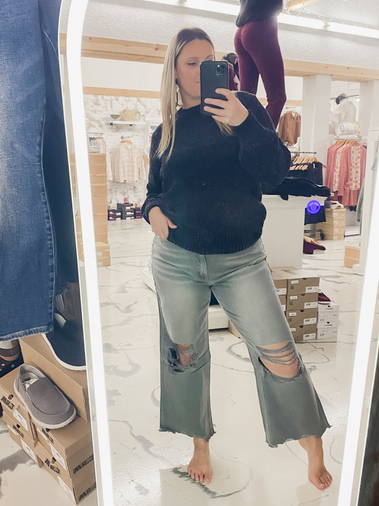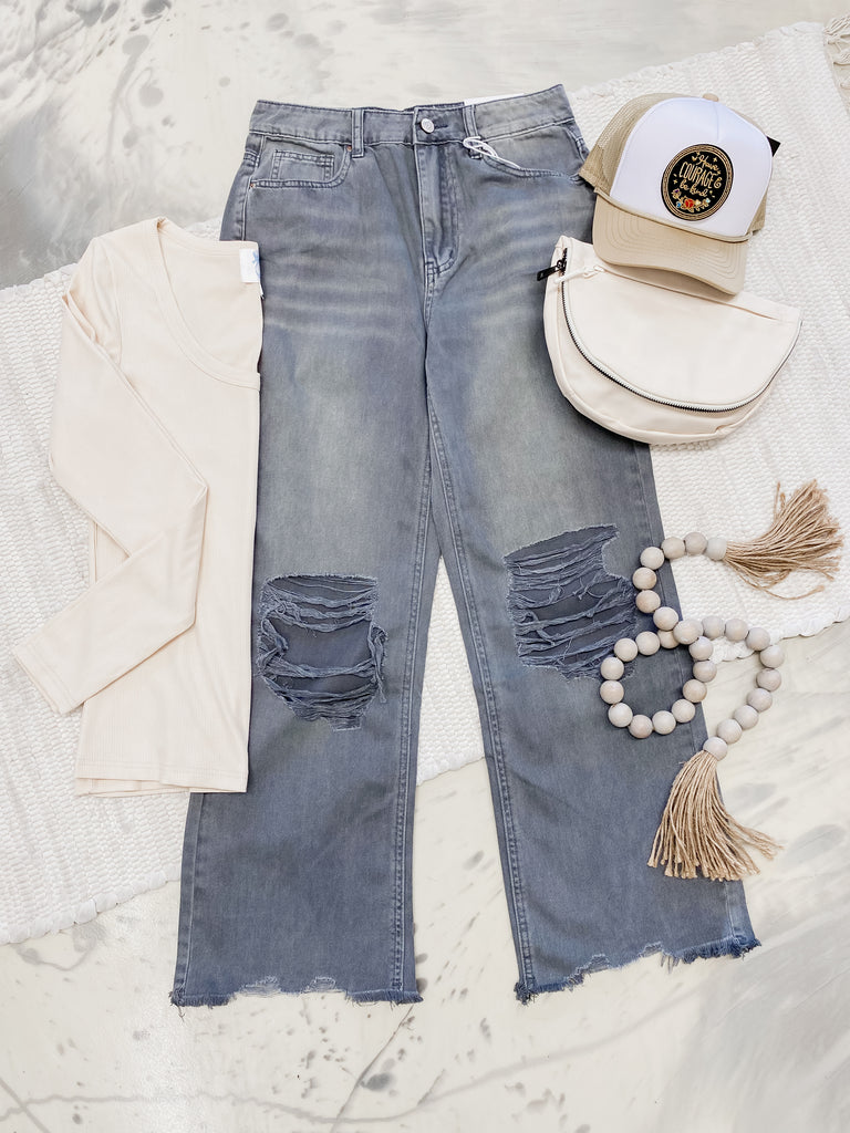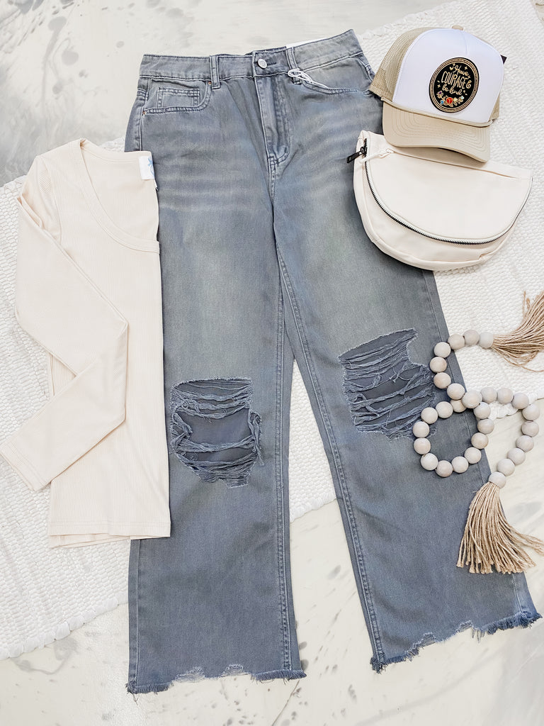 Acid Wash Destroyed Denim in Ash Black