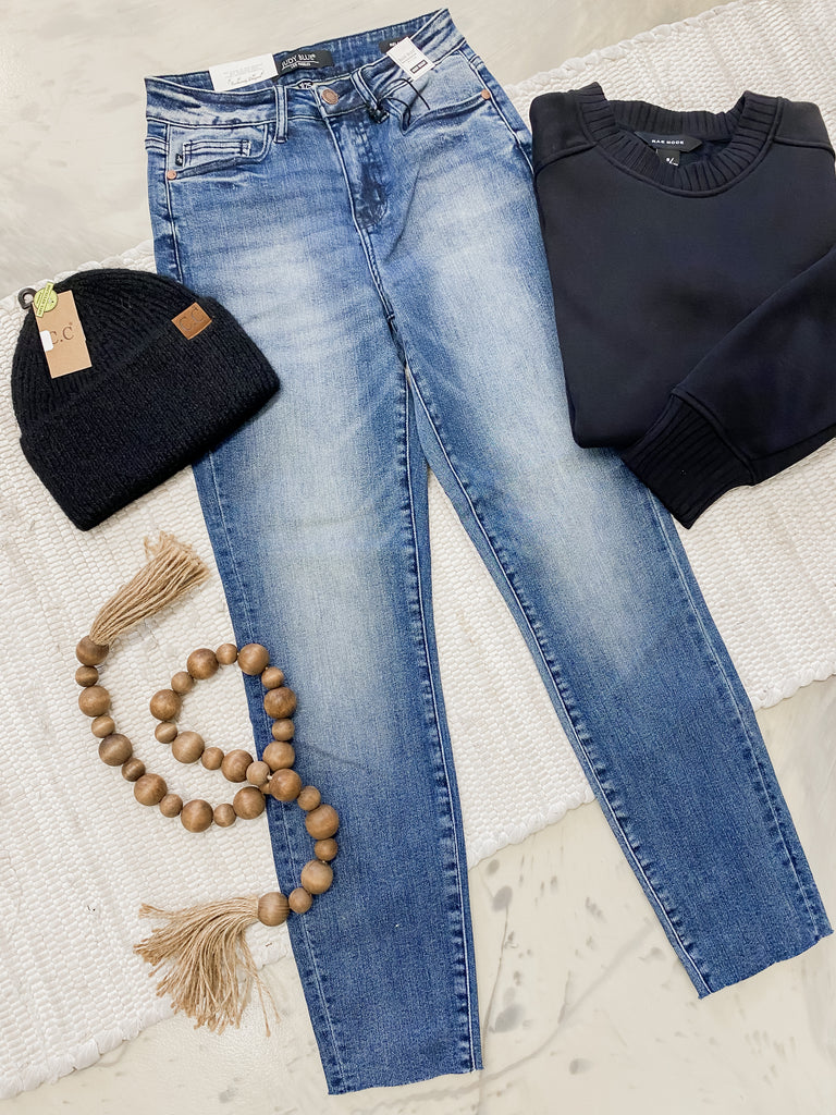 High Rise Raw Hem Relaxed Fit Judy Blue