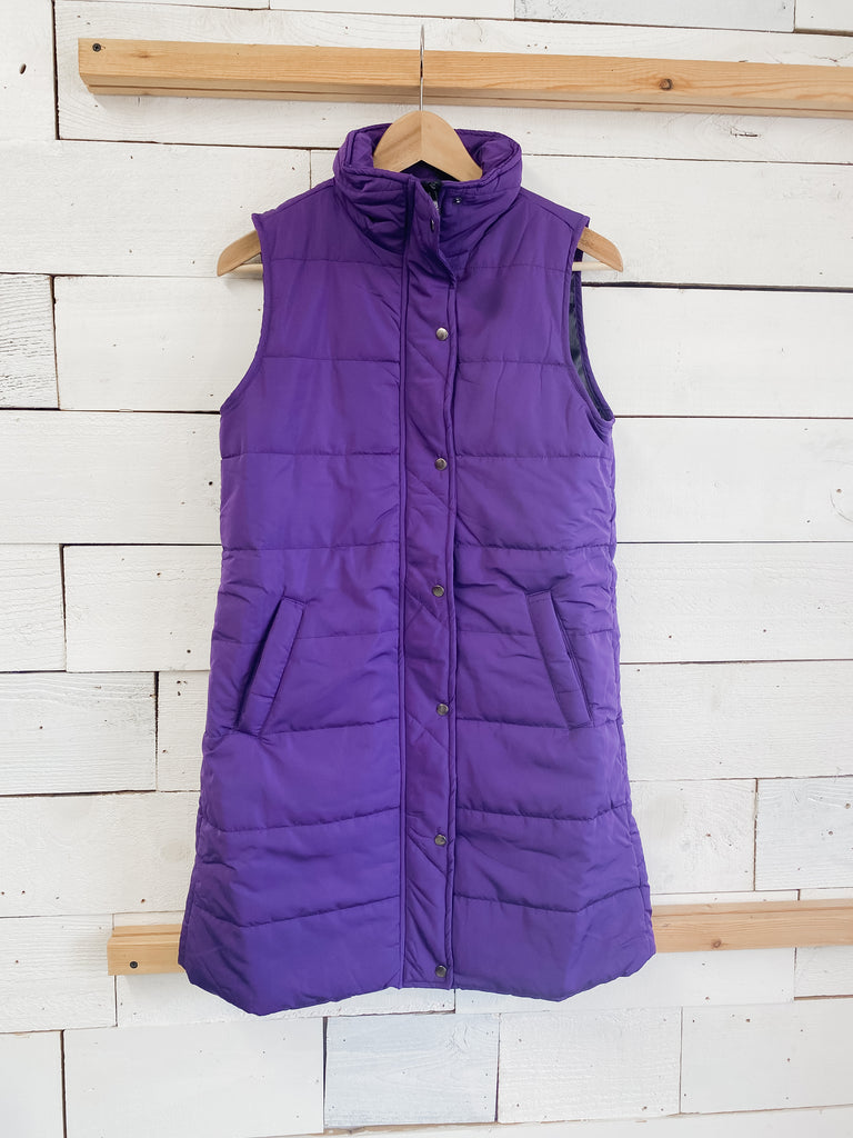 Introducing the Harlow Long Vest in purple! With its convenient pockets, zipper and button closure and versatile pairing options, this vest is a must-have for any wardrobe. Get ready to fall in love and complete your fall and winter looks!
